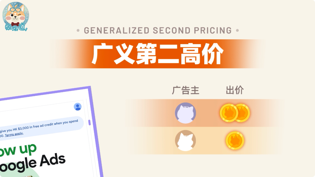 还是举那个例子:假设柴司转行卖狗粮,跟喵司竞争一个广告位。